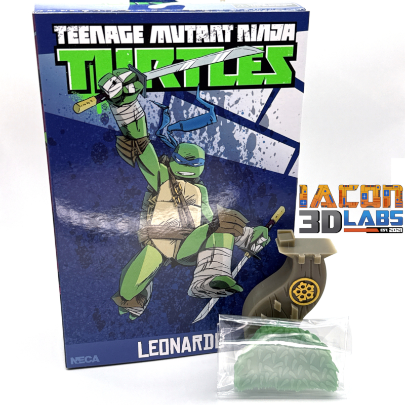 This 7-inch scale Leonardo figure captures the fearless leader of the turtles with incredible painted details to replicate his animated appearance. He includes an array of episode-specific accessories: interchangeable heads and hands, katanas, Mircrofission Omni-Disintegrator, pizza slice, smoke bomb, and Turtlecom. The figure comes in collector-friendly packaging with illustrations by TMNT artist Ciro Nieli.