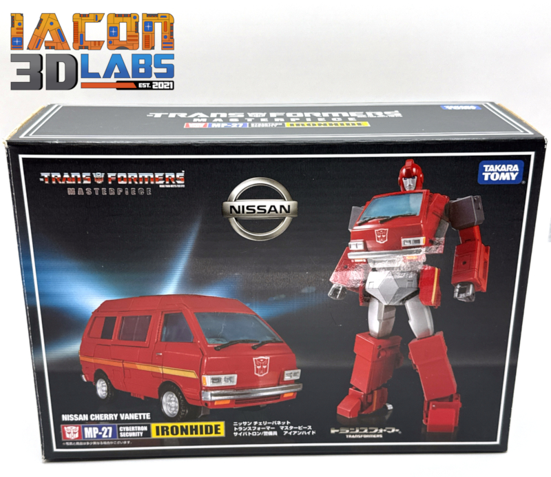 From Takara Tomy Transformers Masterpiece MP-27 Ironhide stands an impressive 8-inches tall in robot mode. Not only is this figure incredibly detailed, but it comes packed with an extinsive array of accessories. MP-27 Ironhide is highly articulated and transforms from a Van to robot and back and as a Masterpiece scaled figure scales with other MP scaled figures in the Transformers Masterpiece toyline.